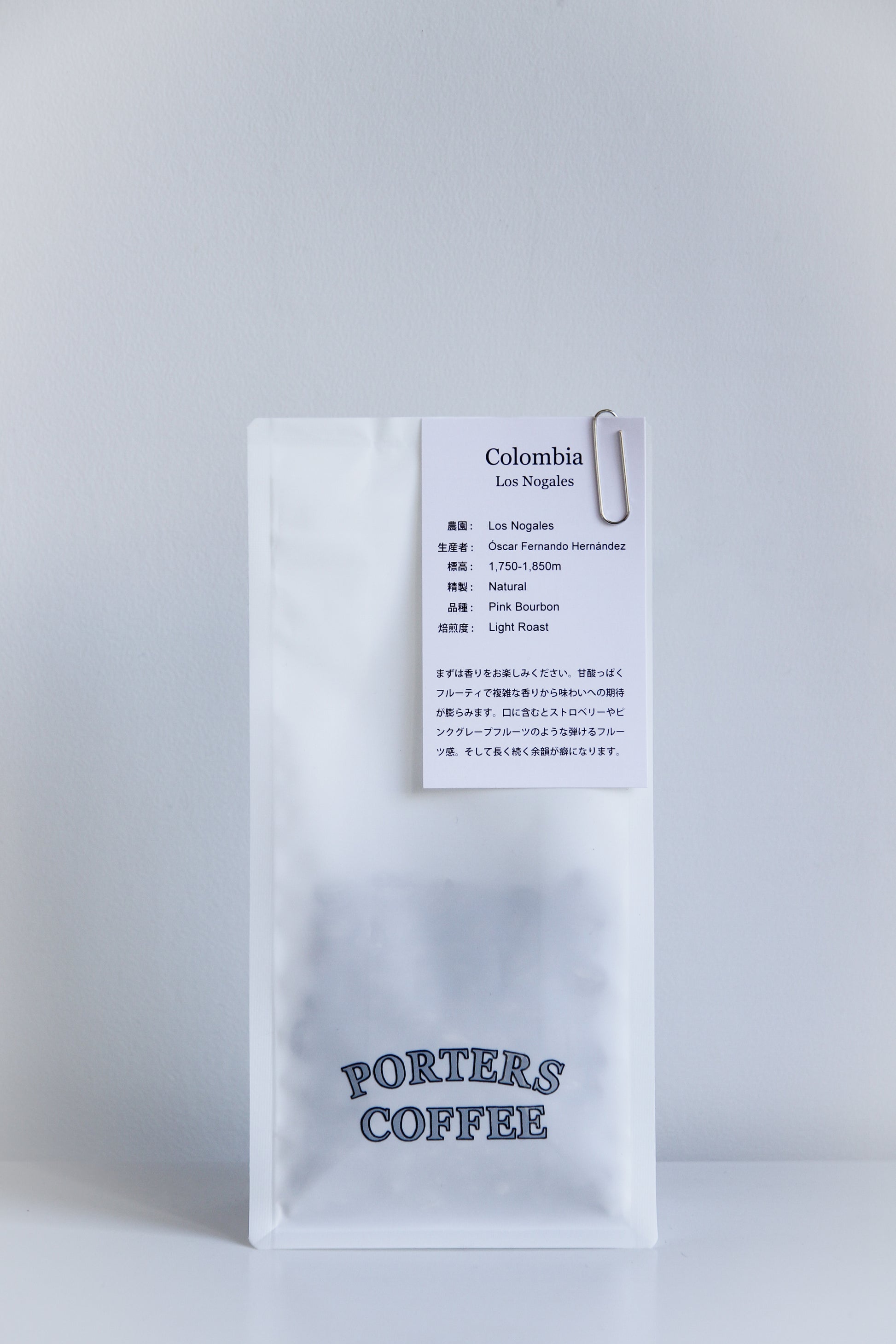 生産者 : Óscar Fernando Hernández 農園 : Los Nogales 標高 : 1,750-1,850m 精製 : Natural 品種 : Pink Bourbon 焙煎度 : Light Roast